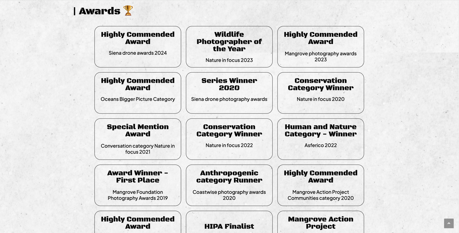 Organized wildlife photography collections in a clean and engaging format